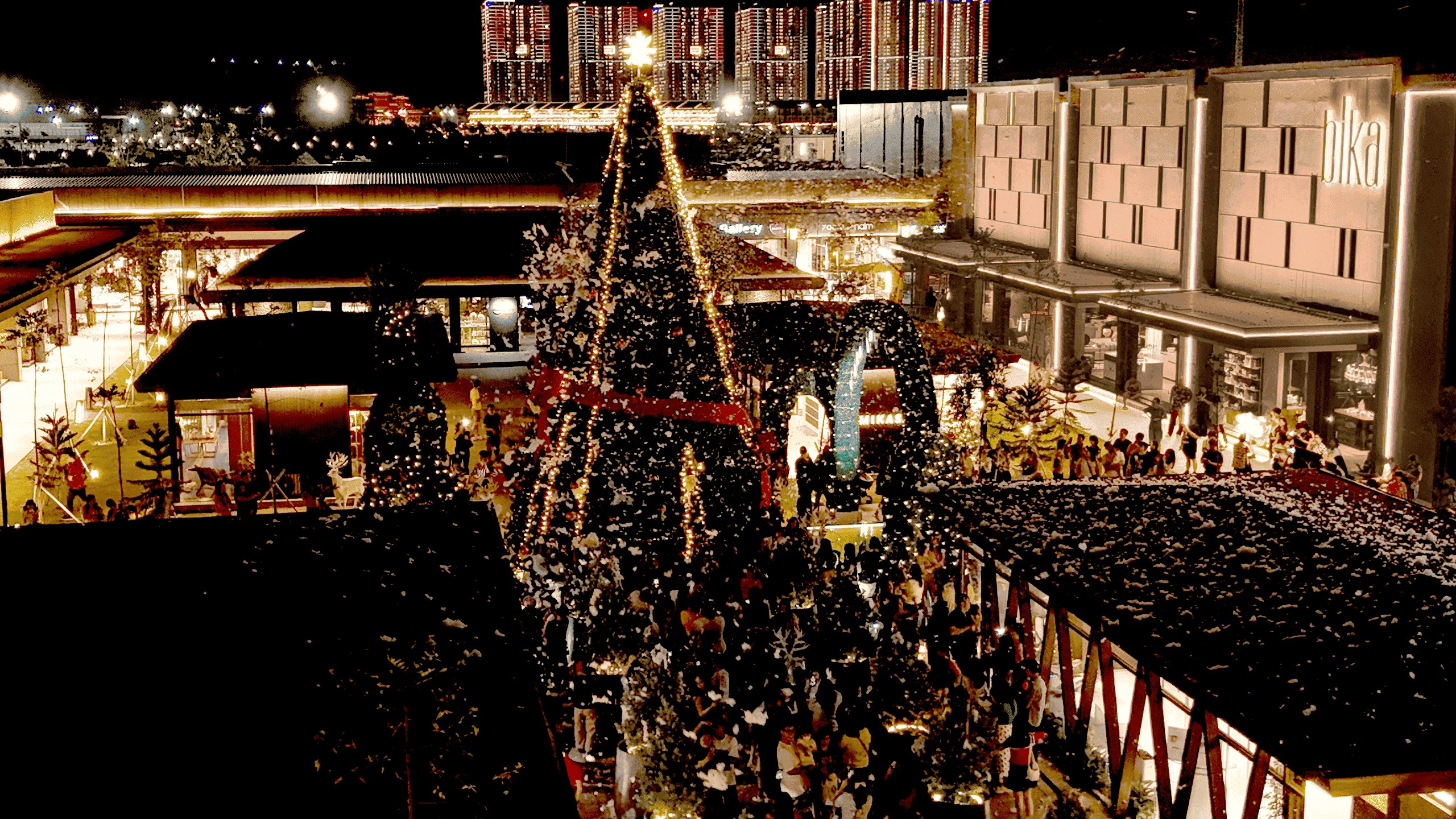 Snowfall and Christmas Tree at Indonesia Design District Every corner holds a story, and every light tells a tale!